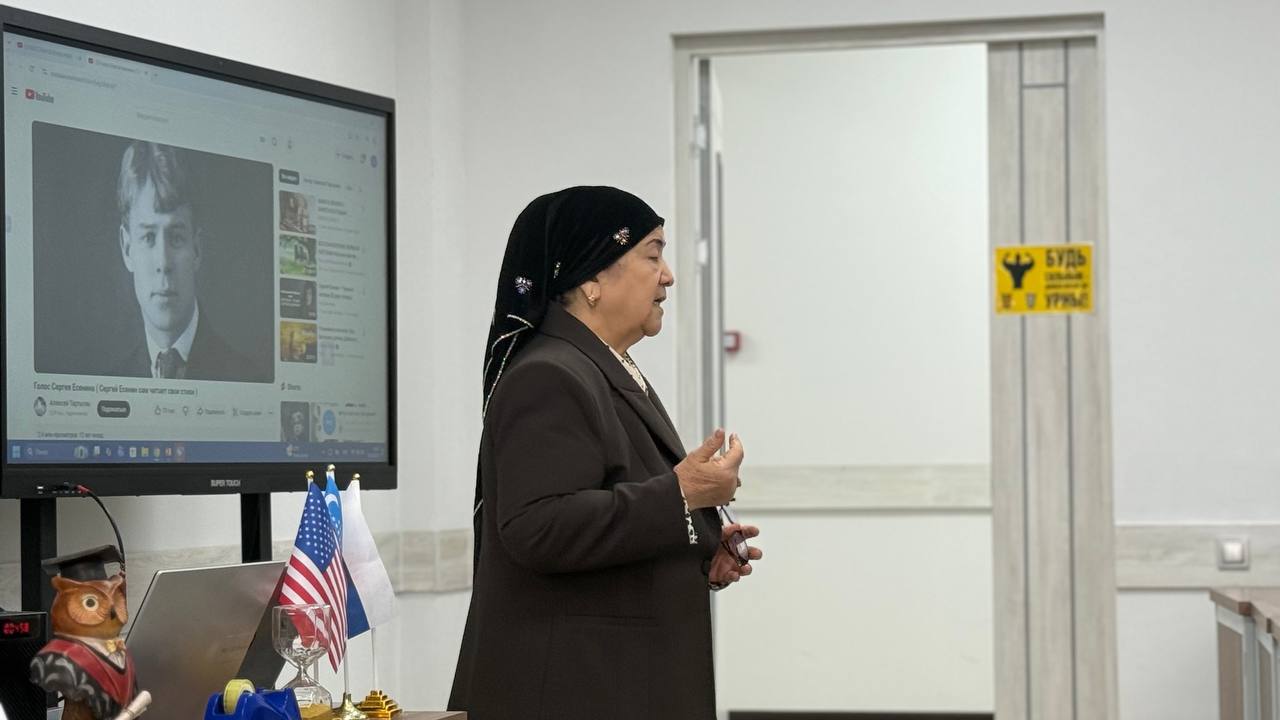 The event was opened by the department teacher Kim O.A.. During the event, the poet’s poems were recited. Additionally, presentations prepared on the topic “The Life and Work of Sergey Yesenin” were shown to the participants.