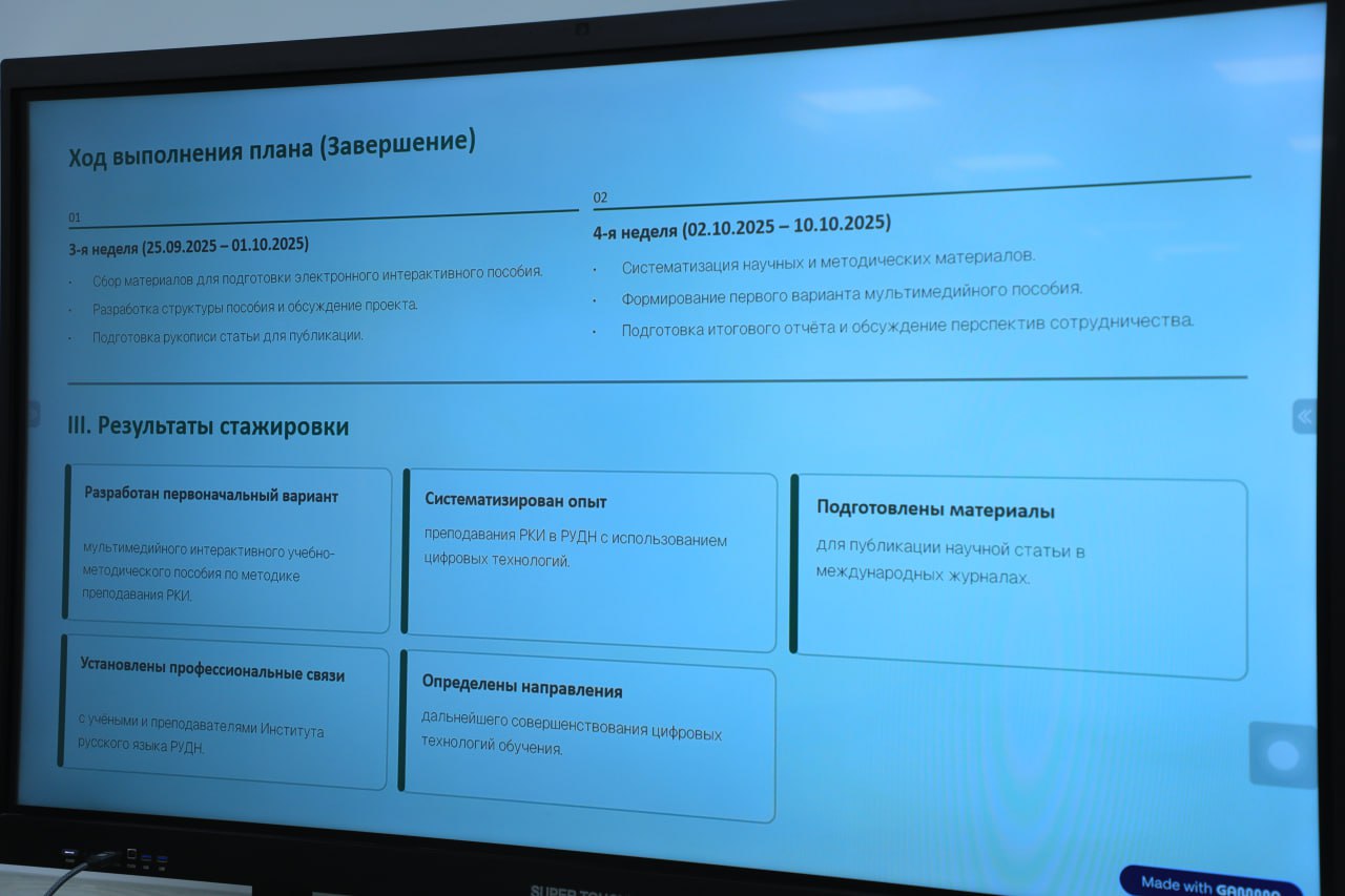 - Hearing the report by Professor A.T. Nurmanov on his scientific internship at the Peoples’ Friendship University of Russia (RUDN University) from September 10 to October 10, 2025;