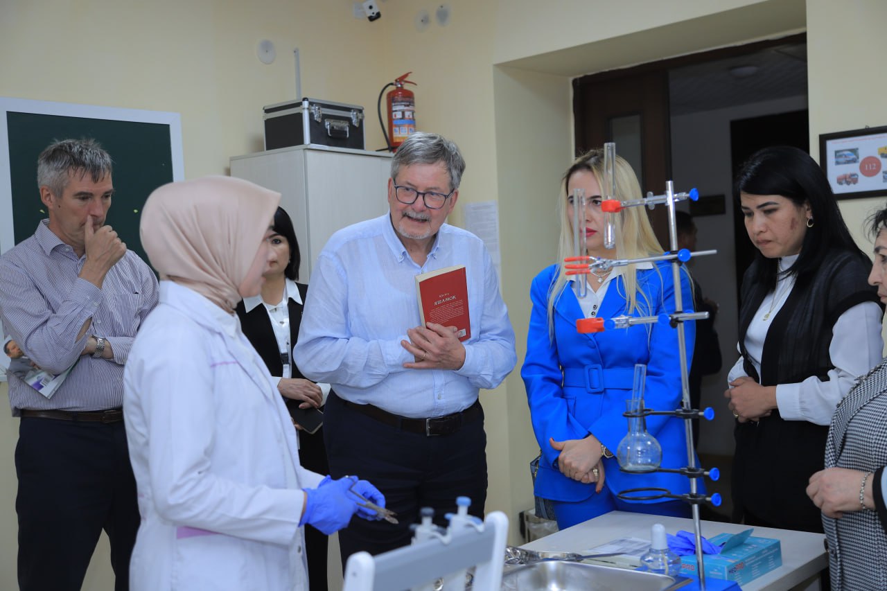 Гости сначала посетили учебные аудитории и лаборатории факультета естественных наук. В учебных кабинетах они присутствовали на семинарских занятиях студентов.