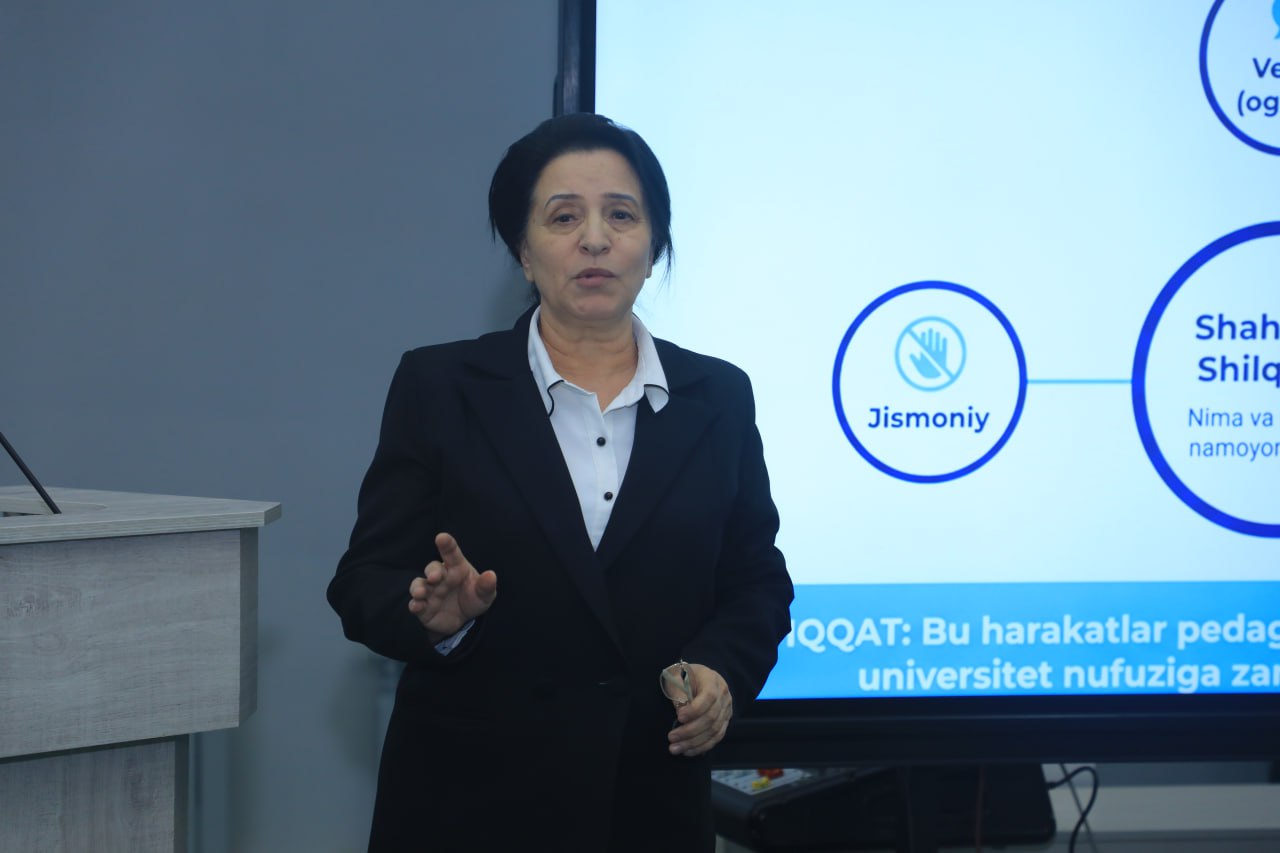 Tadbir davomida so‘zga chiqqan mas’ullar pedagog va xodimlarning huquqiy hamda axloqiy mas’uliyatini yanada kuchaytirish zarurligini ta’kidladilar. Ayniqsa, erkak pedagoglarning talaba-qizlar bilan muloqotida kasbiy etika, xizmat mavqeidan to‘g‘ri foydalanish, shilqimlik va tegajoqlik kabi holatlarga mutlaqo yo‘l qo‘ymaslik masalalariga alohida e’tibor qaratildi. Bunday xatti-harakatlarning huquqiy oqibatlari, jumladan ma’muriy javobgarlik va mehnat munosabatlarining muddatidan oldin bekor qilinishi mumkinligi qayd etildi.