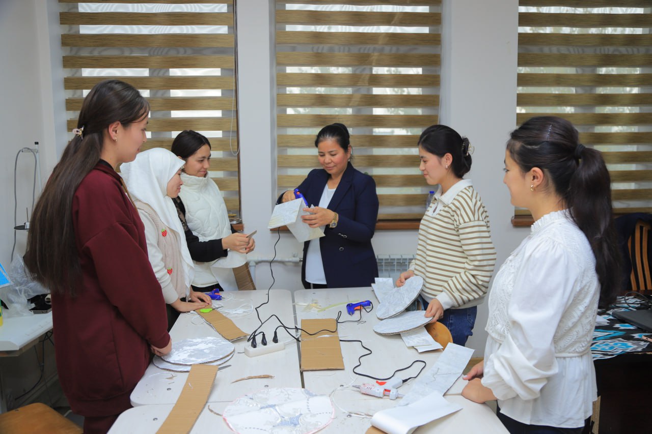 Bugun Jizzax davlat pedagogika universiteti Maktabgacha va boshlang‘ich ta’lim fakultetining Boshlang‘ich ta’lim pedagogikasi kafedrasi qoshida faoliyat yuritayotgan “Texnologiya va art dizayner” to‘garagining navbatdagi mashg‘uloti bo‘lib o‘tdi.