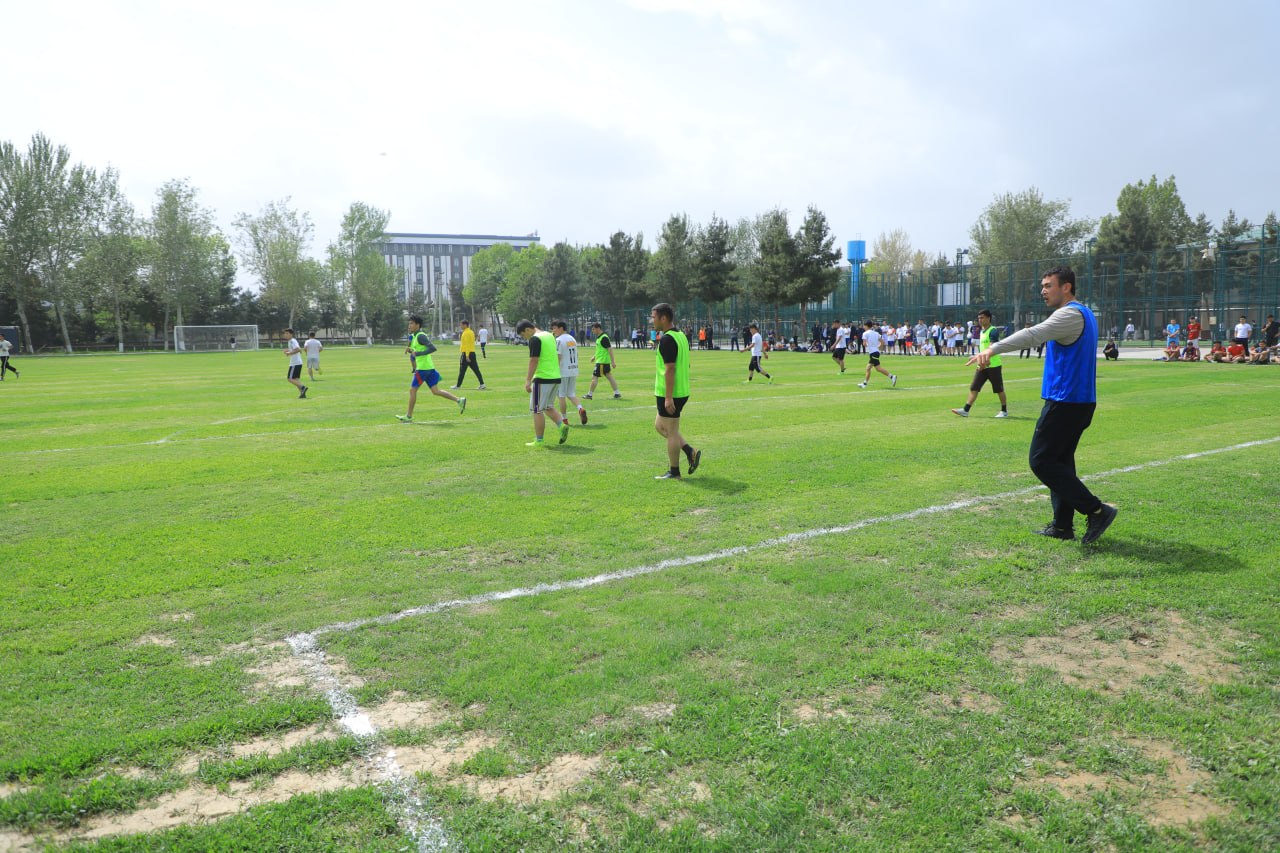 Futbol musobaqalarida 9 ta fakultet jamoasi ishtirok etib, uchrashuvlar yuqori sur’at va keskin kurashlar ruhida o‘tmoqda. Tezkor hujumlar, aniq uzatmalar va chiroyli gollar bahslarga yanada shiddat bag‘ishlamoqda.